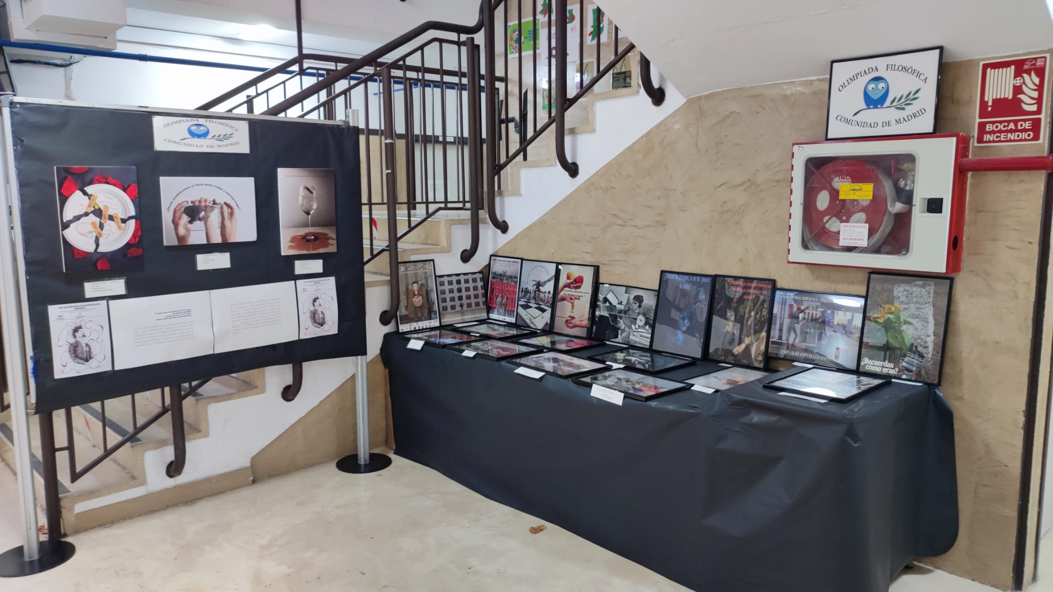 La exposición recoge los trabajos premiados en fotografía y cartel de las últimas convocatorias empezó este año su andadura en el IES Juan de Villanueva de Orcasitas. De allí se trasladó al IES Domenico Scarlatti en Aranjuez y ahora mismo se exhibe en el IES Alpajés de la misma localidad, de donde son las fotos que nos envían sus profesores Francisco Martínez Redondo y Alba París Miquel. En febrero pasará tres semanas en el Colegio de Huérfanos de la Armada y luego estará en el Colegio Quercus.